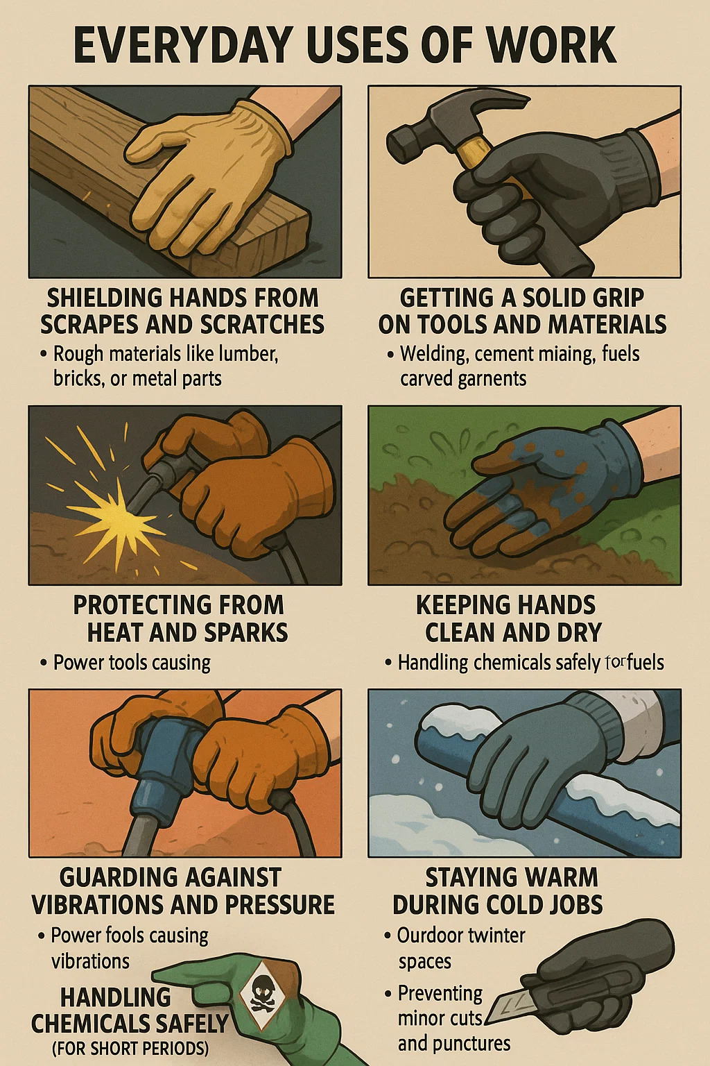 Munkakesztyű a kézvédők a rendetlen, durva vagy kockázatos munkákhoz. Íme, mire használják az emberek minden nap: